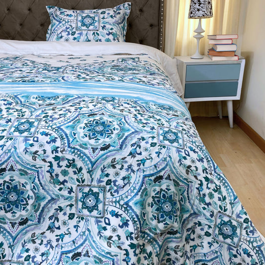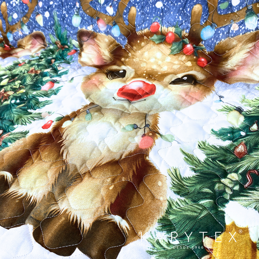 Edredón Navidad BAMBY doble faz con unicolor AZUL. Incluye funda(s) de almohadones decorativos