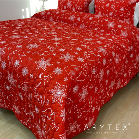 Edredón Navidad ARCANGEL ROJO doble faz con unicolor BLANCO. Incluye funda(s) de almohadones decorativos