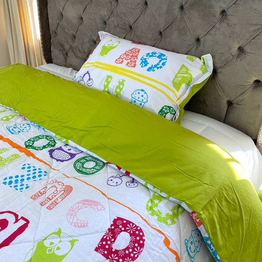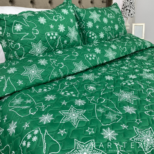 Edredón Navidad ARCANGEL VERDE doble faz con unicolor BLANCO. Incluye funda(s) de almohadones decorativos