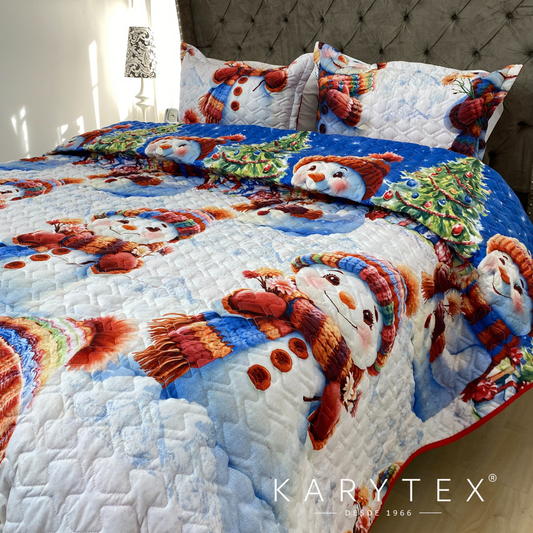 Edredón Navidad MUÑECO DE NIEVE doble faz con unicolor ROJO. Incluye funda(s) de almohadones decorativos