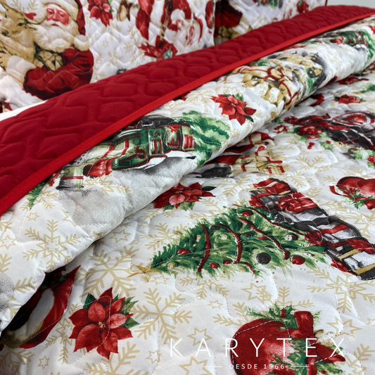 Edredón Navidad TRINEO SANTA doble faz con unicolor ROJO. Incluye funda(s) de almohadones decorativos