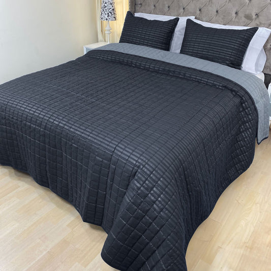 Edredón quilt doble faz negro-gris