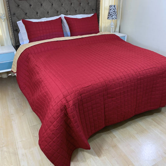 Edredón quilt doble faz vinotinto-camel