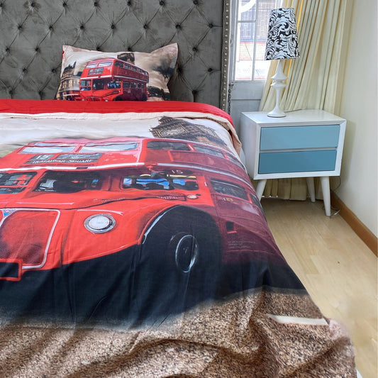 Edredón Navidad TRINEO SANTA doble faz con unicolor ROJO. Incluye funda(s) de almohadones decorativos