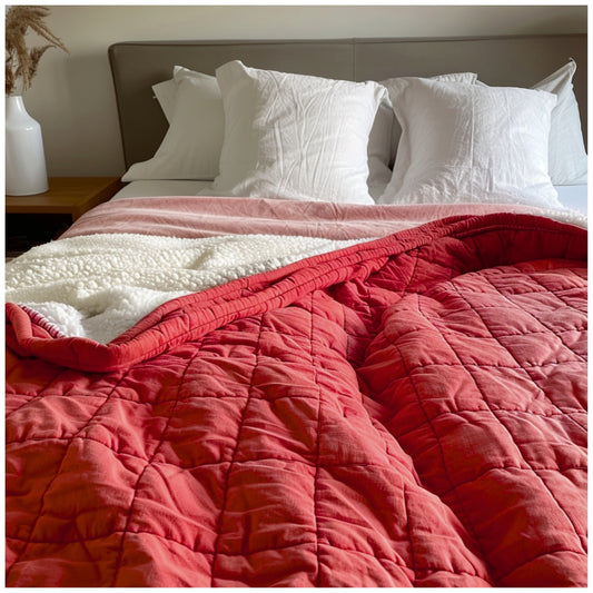 Edredón Navidad BAMBY doble faz con unicolor ROJO, Incluye funda(s) de almohadones decorativos